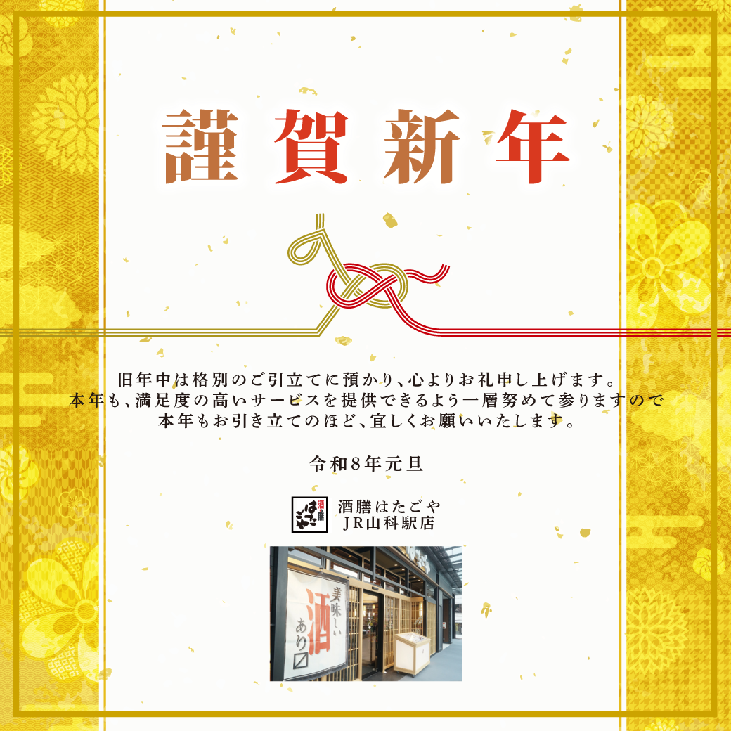新着情報 Topics ホーム お知らせ 2026年 新年のご挨拶 お知らせ Archives 2026年 新年のご挨拶 2026.01.01 お知らせ JR山科駅店は2日より営業を行ないます。 皆様のお越しを心よりお待ちいたしております。 >>営業時間のお知らせ カテゴリ選択 すべて お知らせ フェア情報 ピックアップ 店舗情報 JR山科駅店 取り組み